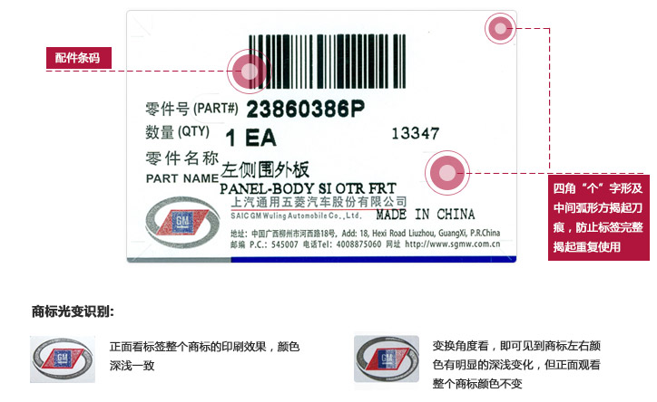 上汽通用五菱纯正配件防伪识别